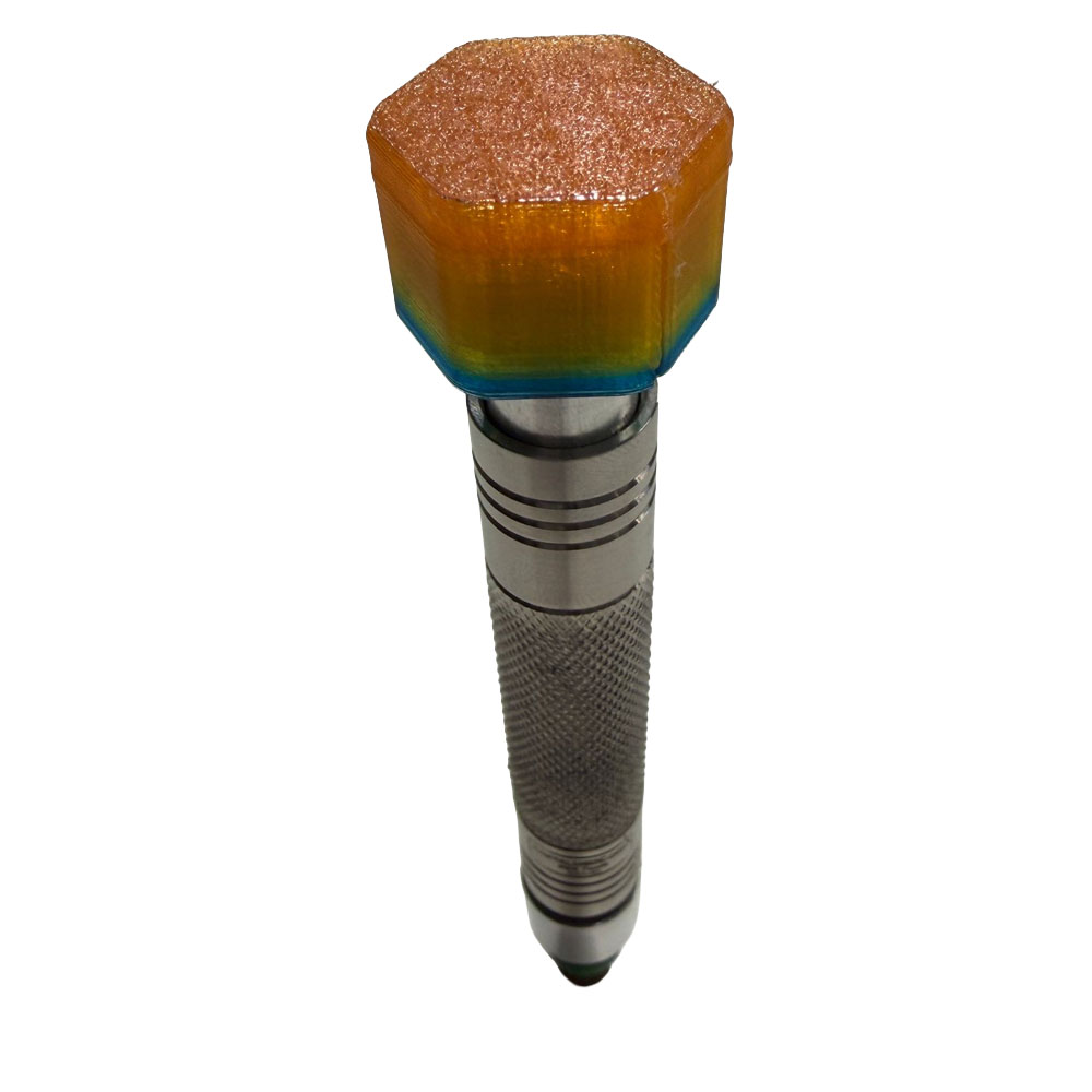 Leveraging our SOB Hammer technology, we’ve developed an advanced knockdown mechanism featuring a free-floating design, internal spring, and precision-crafted grade 2 titanium tubing manufactured in Eureka, Illinois. The tubing boasts reverse diamond knurling for enhanced traction. Internal components are made from high-quality domestic aerospace-grade 6061 aluminum, treated with type 2 hard coat anodization and Teflon infusion for increased durability. Our proprietary taper lock bore ensures secure retention of the knockdown tip, preventing accidental release. The striker head features an octagonal design and embedded magnet for stability, paired with a removable TPU striking head cover available in multiple colors, providing cost-effective paddle-like functionality. The custom USA-sourced spring is crafted from premium medical-grade 316 stainless steel for enhanced resilience. This sophisticated knockdown mechanism is available in various finishes, including natural, faux gold plating, rainbow dip, and blue/purple tied options.